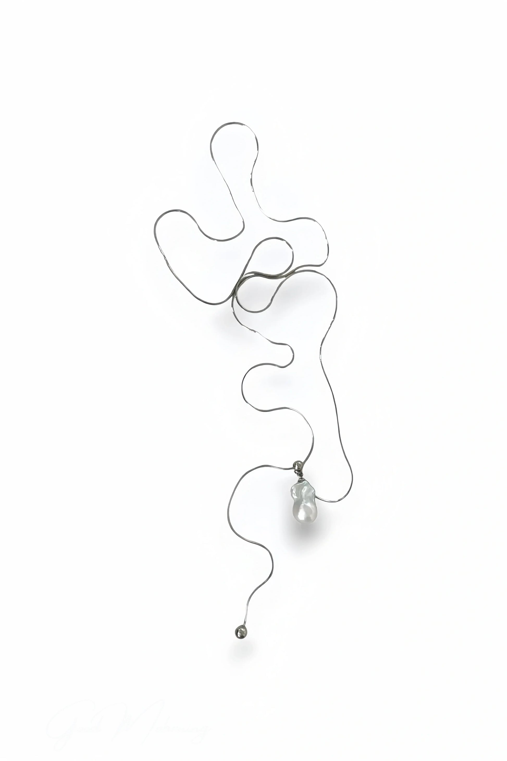This necklace features a baroque pearl on an extended silver chain. The pearl’s natural beauty and unique shape are highlighted by the chain’s luster, offering versatile styling options. A bold statement of timeless sophistication.