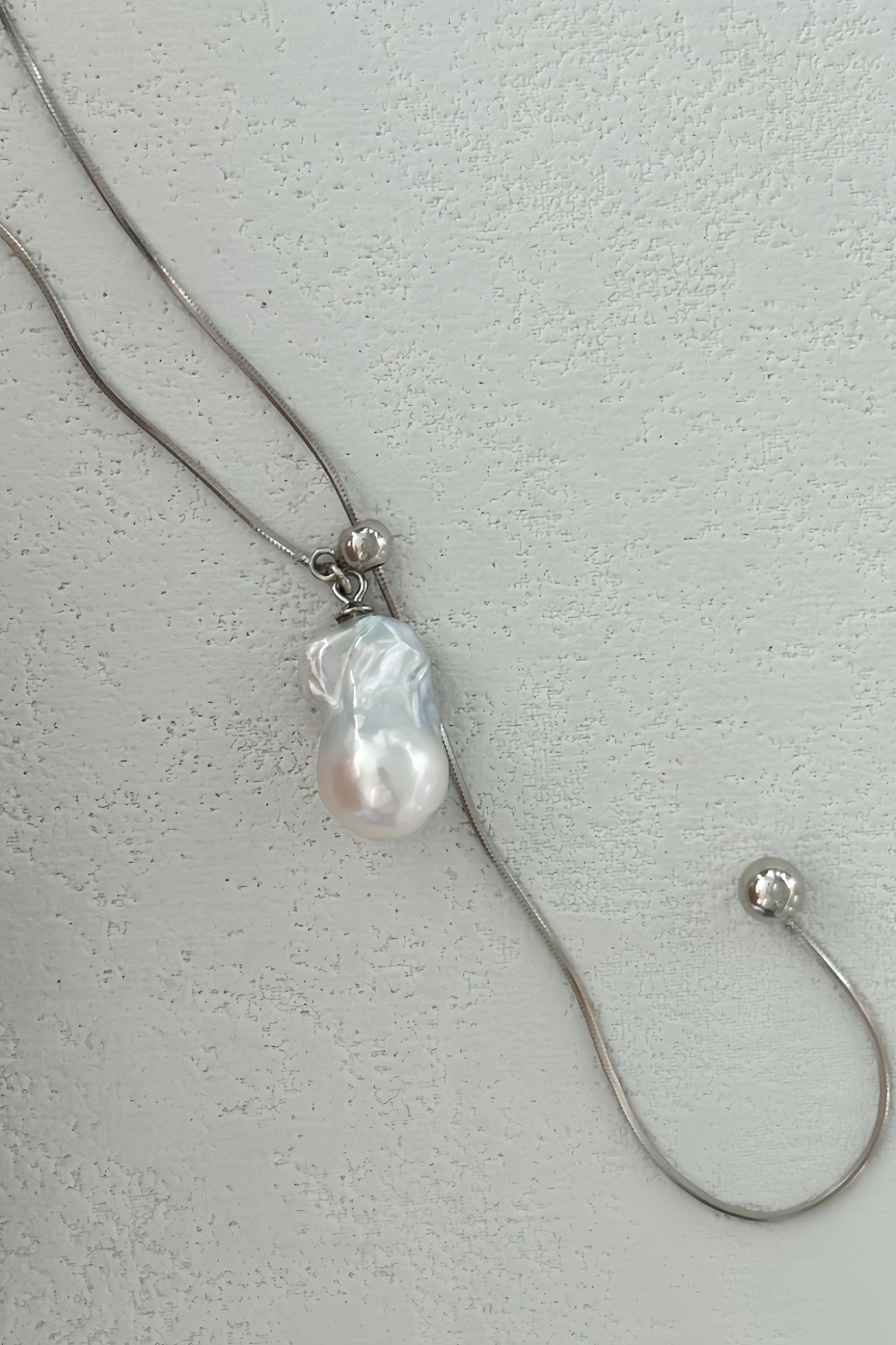 Extended Silver Chain Baroque Pearl Necklace