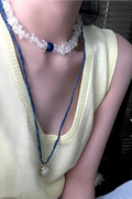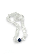 This necklace blends translucent crystal beads with a striking lapis lazuli gemstone, its rich blue hue adding depth and drama. The lapis lazuli, a symbol of wisdom and peace, inspires your mind and spirit, while its vibrant color adds a bold burst of dynamic energy.